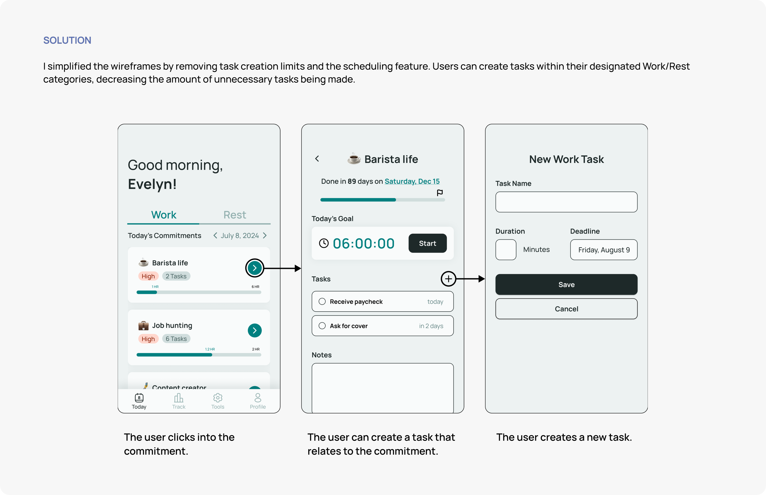 I sought to design a solution that promoted single-task focus and realistic goal setting to enhance users' chances of achieving their objectives and improving their overall productivity.
